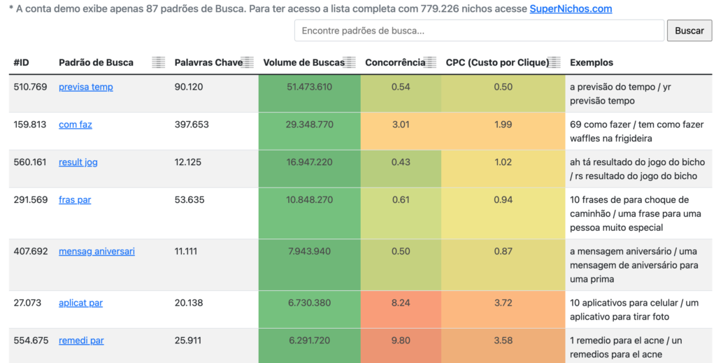 A base dados do Super Nichos já traz padrões de palavras comerciais e transacionais para falicitar a sua escolha, então não é preciso analisar, já esta pronto.
